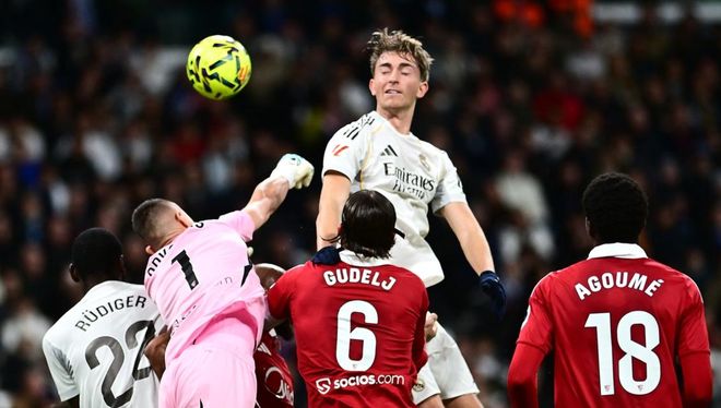 第24分鐘,赫伊森頭球攻門,頂高了。第34分鐘,何塞-安赫爾犯規(guī),被出示黃牌。4分鐘后,皇馬進(jìn)球了!羅德里戈開出角球,貝林厄姆高高躍起,頭球攻門,皮球鉆入球門遠(yuǎn)角。門將只能眼睜睜看著皮球入網(wǎng)!皇馬取得領(lǐng)先。半場(chǎng)補(bǔ)時(shí)階段,桑切斯倒鉤射門,踢高了。半場(chǎng)結(jié)束,皇馬1-0塞維利亞。