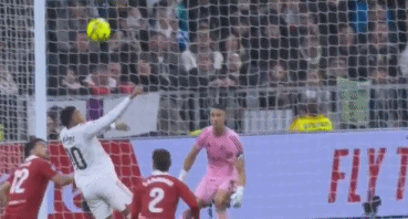 第38分鐘,馬爾康鏟倒羅德里戈,后者右路定位球傳中,貝林厄姆沖頂破門,皇馬打破僵局,1-0!