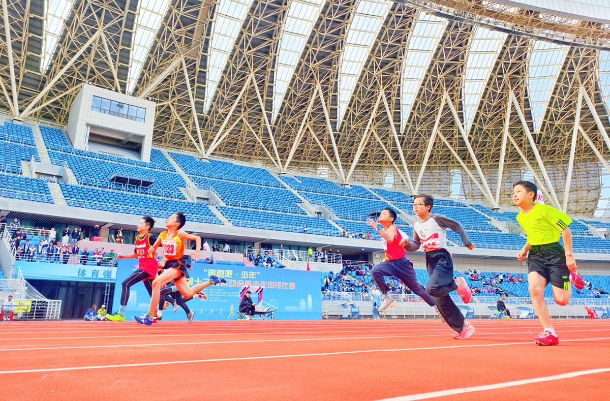 22日,黃石市第十二屆運動會青少年田徑比賽在市奧體中心開賽。1112名參賽選手在賽場上奮勇爭先,激烈角逐。