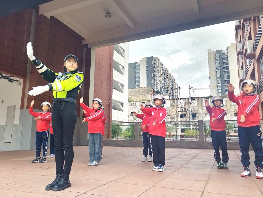 10月21日,黃石市中山小學(xué)教聯(lián)體中山校區(qū)舉行交通安全宣講暨演練活動(dòng)。黃石市公安局交通管理支隊(duì)黃石港大隊(duì)交警帶來(lái)生動(dòng)的交通安全教育課,引導(dǎo)師生自覺(jué)遵守交通規(guī)則。圖為互動(dòng)環(huán)節(jié),學(xué)生跟著交警學(xué)習(xí)交通指揮手勢(shì)。記者 高晴 實(shí)習(xí)生 張漢青 攝