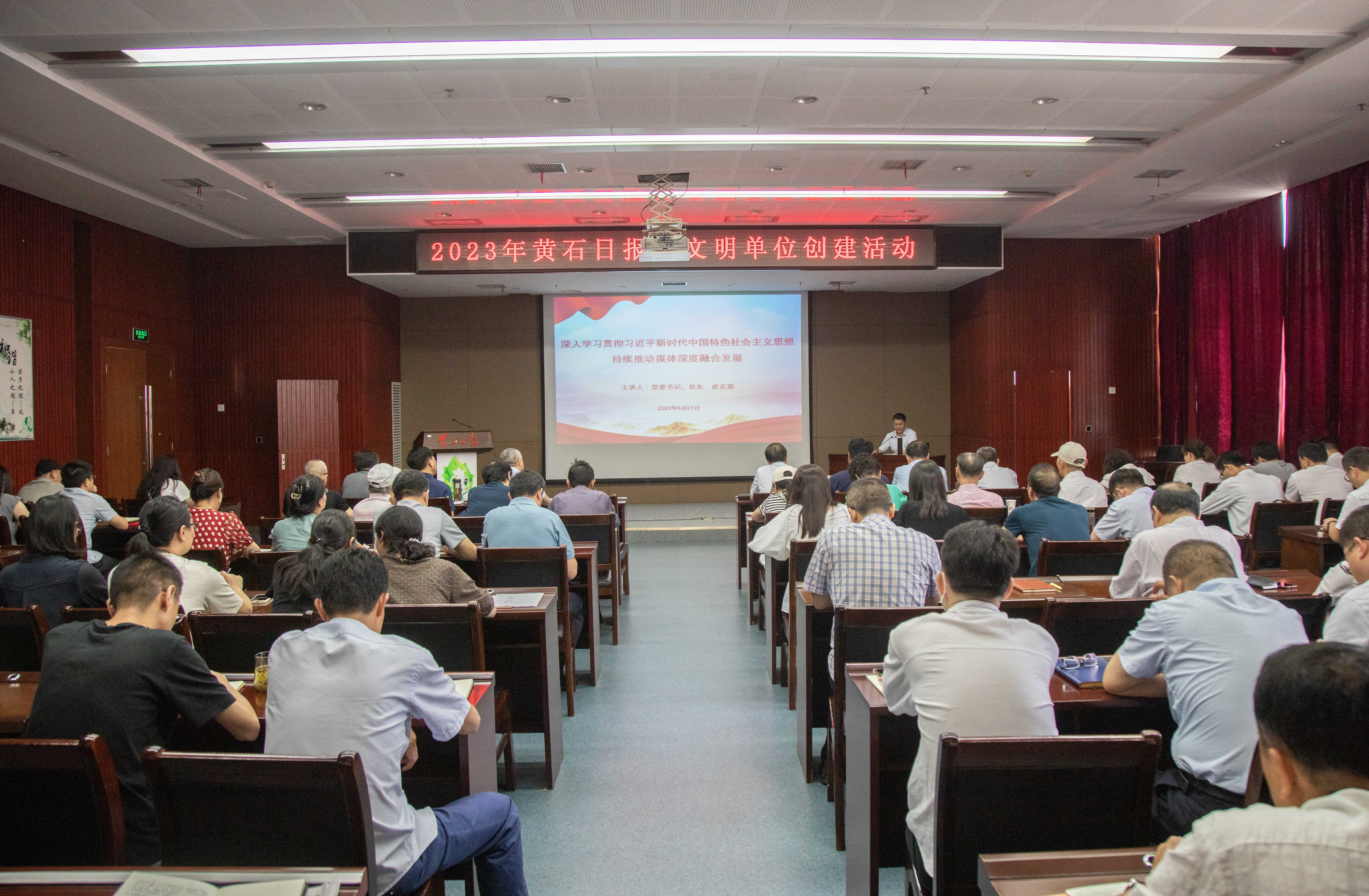 6月21日下午,為進(jìn)一步加強(qiáng)文明單位的創(chuàng)建與管理,黃石日報(bào)社在報(bào)社三樓學(xué)習(xí)報(bào)告廳開展習(xí)近平新時(shí)代中國特色社會(huì)主義思想專題學(xué)習(xí)。報(bào)社黨委書記、社長皮正茂同志圍繞“深入學(xué)習(xí)貫徹習(xí)近平新時(shí)代中國特色社會(huì)主義思想,持續(xù)推動(dòng)媒體深度融合發(fā)展”,給大家上了一堂生動(dòng)的黨課,深刻闡述了媒體融合發(fā)展的時(shí)代意義、深入分析了媒體融合發(fā)展的現(xiàn)實(shí)困境,并對積極推進(jìn)媒體融合發(fā)展提出了建議和要求,對提升黨員干部能力水平,積極推進(jìn)報(bào)社“第三次創(chuàng)業(yè)”有很強(qiáng)的針對性和指導(dǎo)性。黃石日報(bào)社全體黨員干部參加了學(xué)習(xí)。(記者?周巍?攝)